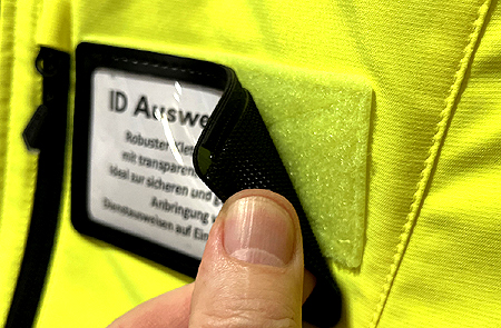 Klettbarer Ausweishalter mit transparenter Hülle zur schnellen und sicheren Befestigung von Dienstausweisen auf Einsatzjacken im Rettungsdienst! Für alle Dienstausweise im Scheckkarten-Format!